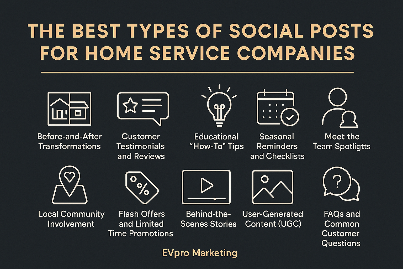 At EVpro Marketing, we specialize in helping local service providers just like you develop smart, simple, and effective social media strategies. Here’s what we recommend when it comes to choosing the best types of posts for your business.